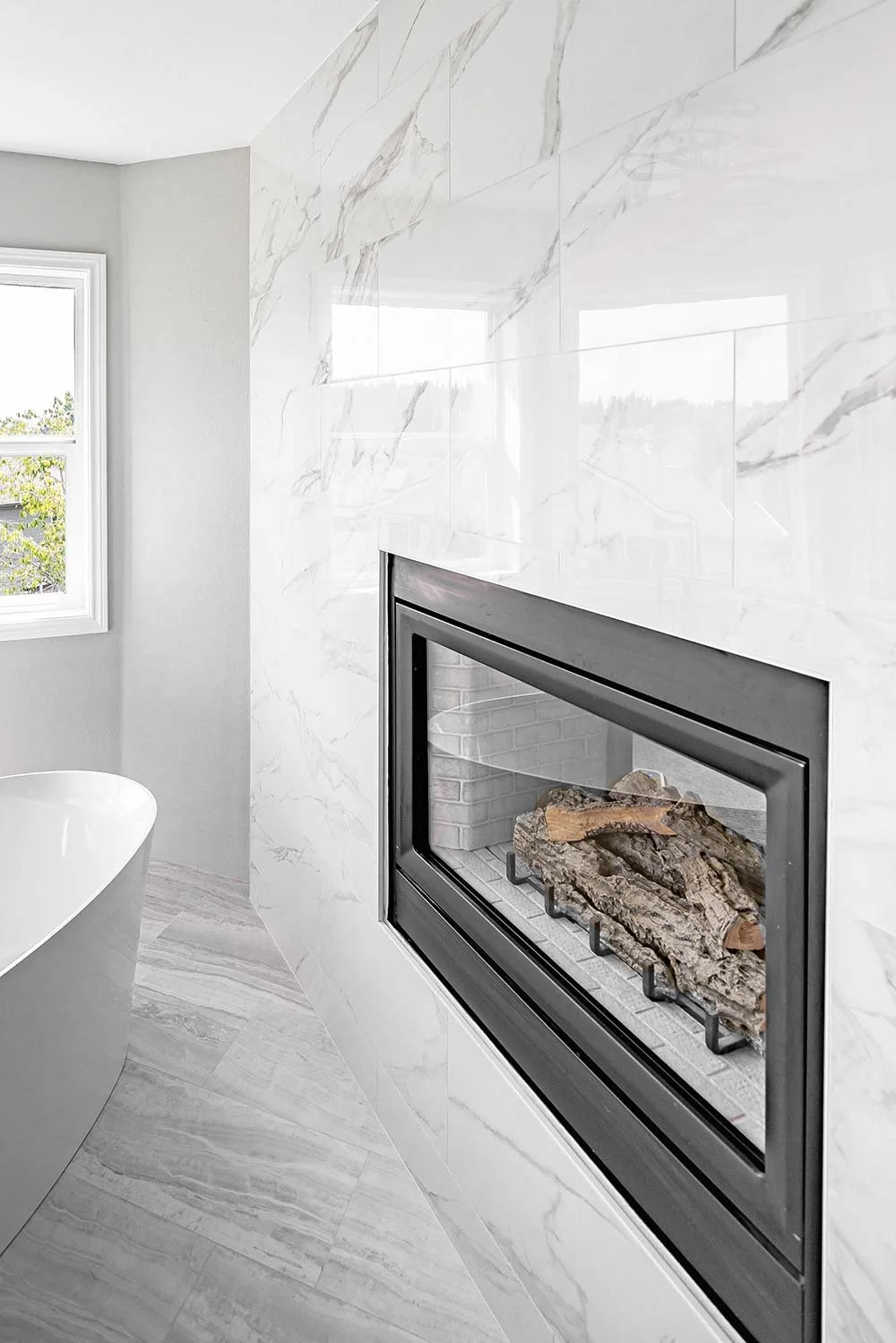 The freestanding bathtub in this luxurious bathroom is a centerpiece of indulgence and relaxation. Positioned strategically within the space, it commands attention and invites a sense of serenity. This elegant fixture is more than just a utilitarian element; it's a statement of opulence and style.